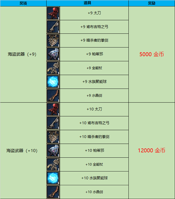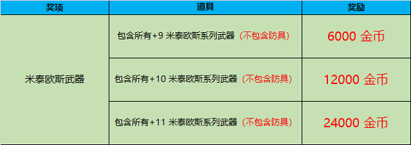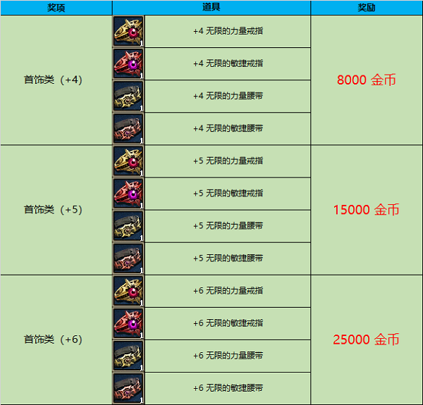 活动内容:活动期间强化出以下道具即可获得额外金币奖励。