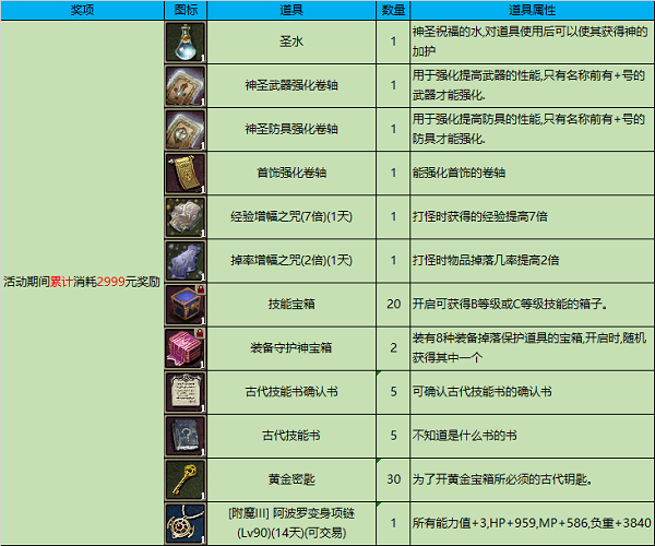 活动期间在单服务器累计消耗2999元,可获得以下奖励,奖励将在10..