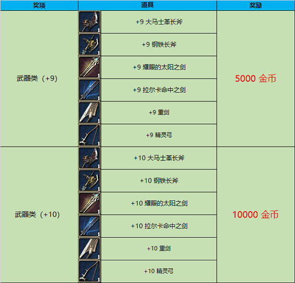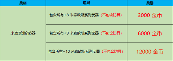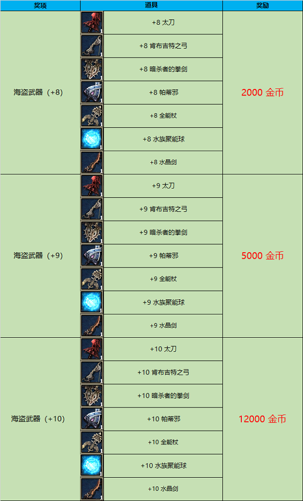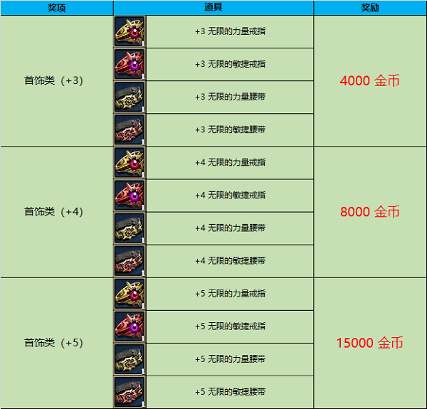 活动内容:活动期间强化出以下道具即可获得额外金币奖励。