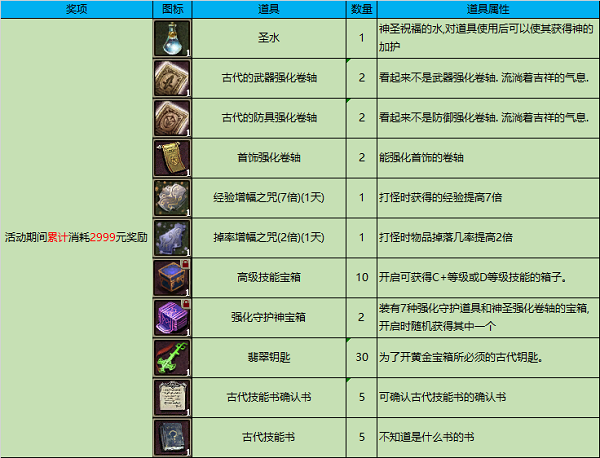 活动期间在单服务器累计消耗2999元,可获得以下奖励,奖励将..