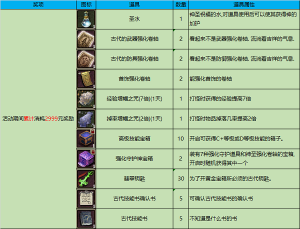活动期间在单服务器累计消耗2999元,可获得以下奖励,奖励将在..