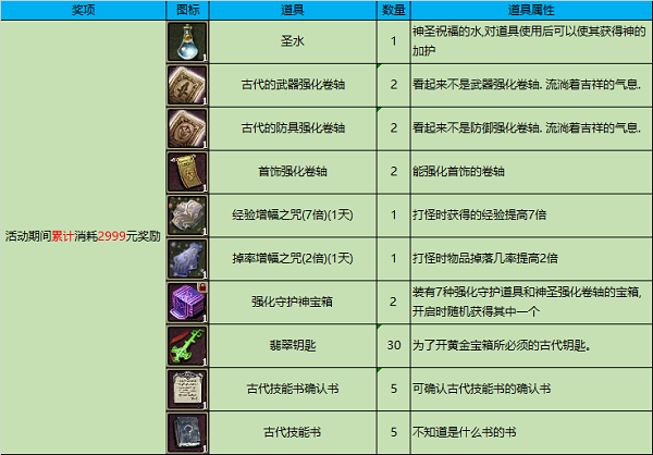 活动期间在单服务器累计消耗2999元,可获得以下奖励,奖励将在..