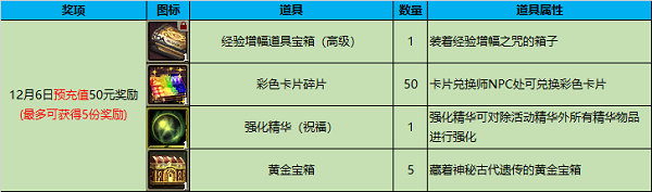 2.12月6日00:00-23:59在《圣光纪元》服务器至少充值50元才可获得预充值奖励;