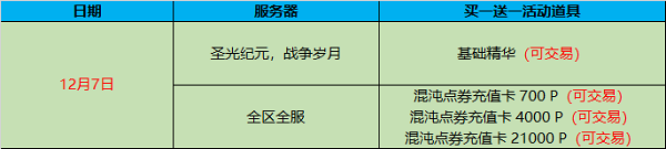 2025年12月7日新服《圣光纪元》开服活动