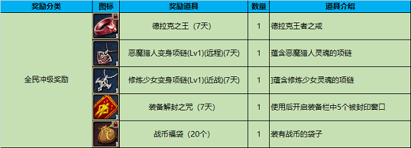 活动内容:在活动期间截止12月9日07:00各职业前5名会获得以下奖励,刺客职业,精灵职业会获得额外奖励,等级相同时,会以角色经验值进行排名,奖励会在12月9日通过礼品箱发放。