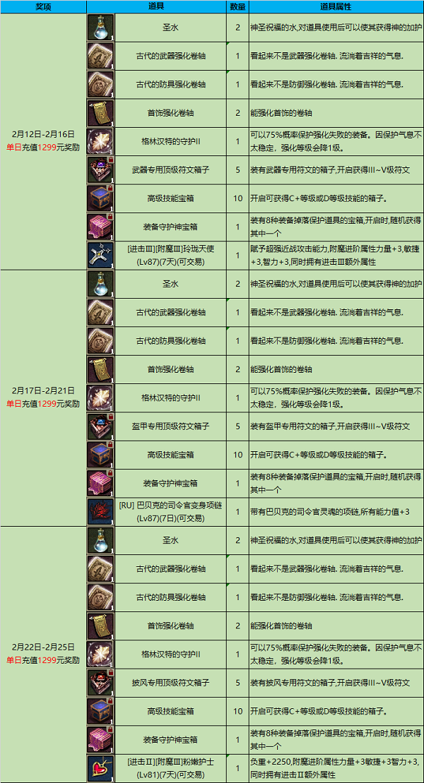 (注:单日充值1299元不会获得单日充值699元和299元档次奖励)