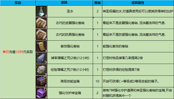 (注:单日充值1299元不会获得单日充值699元和299元档次奖励)