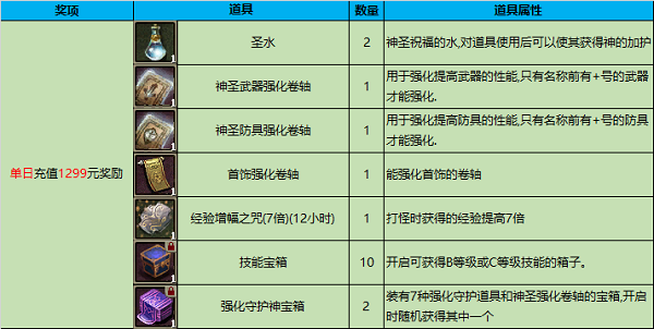 (注:单日充值1299元不会获得单日充值599元档次奖励)