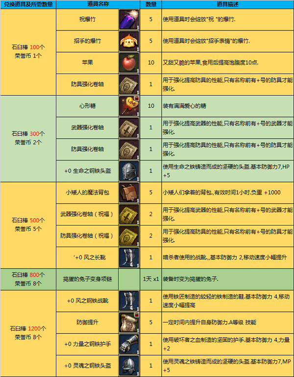 活动期间,狩猎怪物可获得石臼棒,使用对应数量的石臼棒和荣誉币即可到各大城镇的<活动>流氓兔处兑换物资。