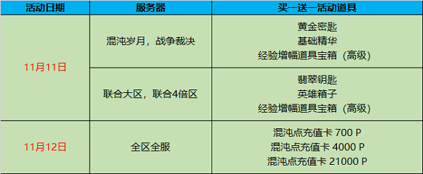 注:请广大玩家务必仔细确认活动日期和活动道具,非活动期间购买活动道具无法获得买一送一的奖励,请大家谅解!